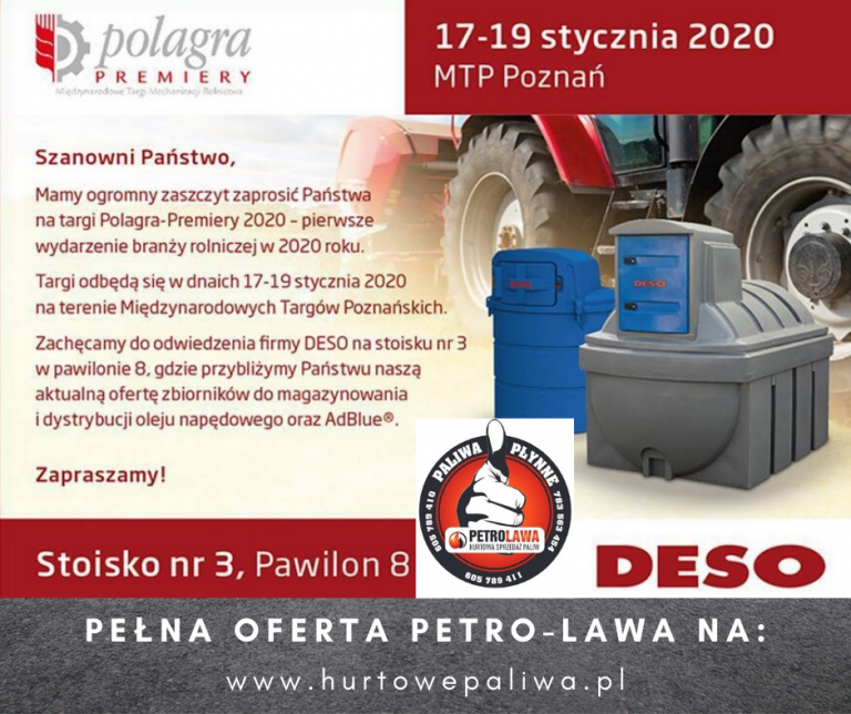 Serdecznie zapraszamy wszystkich zainteresowanych ofertą zbiorników paliwowych jak i samym paliwem na targi w Poznaniu na których zaprezentujemy Państwu naszą szeroką ofertę oraz odpowiemy na wszelkie pytania. Nasi przedstawiciele przez całe targi będą do Państwa dyspozycji.